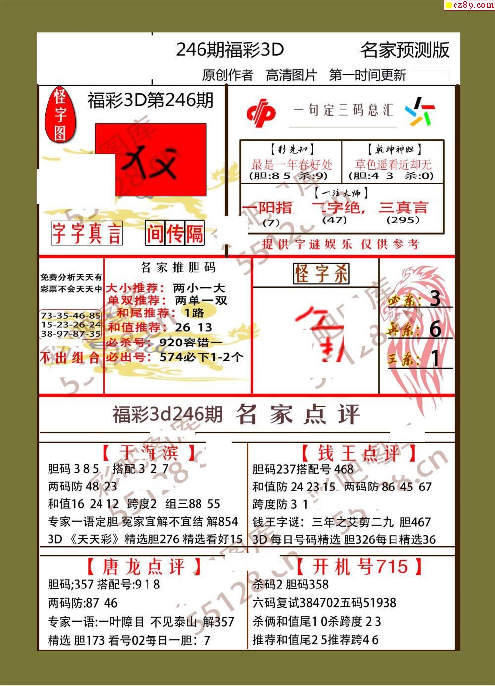 > 25年246期福彩3d牛彩名家预测图谜